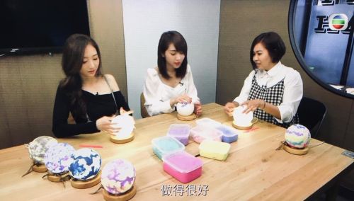 「愛家人物」,主持們隨導師學習以輕黏土打造「星空夜燈」。